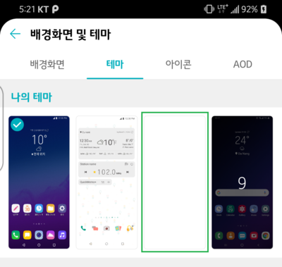 3. 이제 "테마" 설정 화면으로 다시 돌아와서 본 "통신사 문구 숨김 테마"를 적용해 주세요.