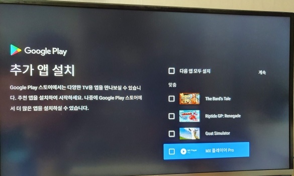 (PC 모니터에서 테스트했습니다) 기기를 켜면 안드로이드tv 초기 설정, 그리고 티보 계정 등록 후 (어떻게 건너뛰는지 모르겠네요) 안드로이드tv 초기화면이 반겨줍니다.