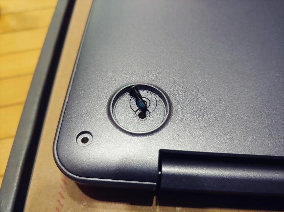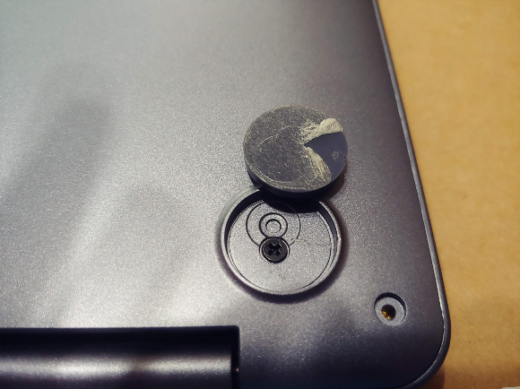 힌지 쪽 고무받침 두 개 밑에도 나사가 숨겨져 있으니 꼭 풀어내야 합니다. 저는 고무받침 떼어내려다 하판 케이스에 생채기를 만들었습니다... 실패!