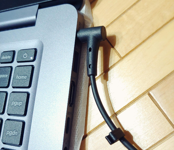 전원 단자는 우측에 위치해 있으며 전원 플러그는 맥세이프, 서피스 커넥터 같은 자석식 아니고 그냥 일반적인 모양입니다. 고가 모델은 아니니까 인정..